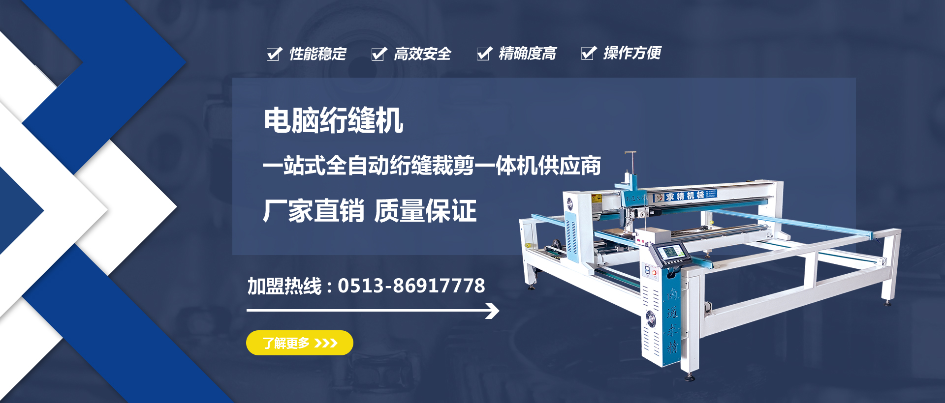 南通求精絎縫設(shè)備廠(chǎng)(原如東求精機(jī)械)是集軟件開(kāi)發(fā),電子技術(shù),機(jī)械制造于一體的電腦絎縫機(jī)及相關(guān)設(shè)備的專(zhuān)業(yè)研發(fā)生產(chǎn)企業(yè),生產(chǎn)經(jīng)營(yíng)絎縫機(jī)有近二十年歷史。我公司產(chǎn)品還遠(yuǎn)銷(xiāo)歐洲、南美洲、非洲及東南亞等地區(qū)。我公司一直奉行“用戶(hù)為上、以質(zhì)取勝”的宗旨,以市場(chǎng)為導(dǎo)向,適時(shí)地推陳出新。